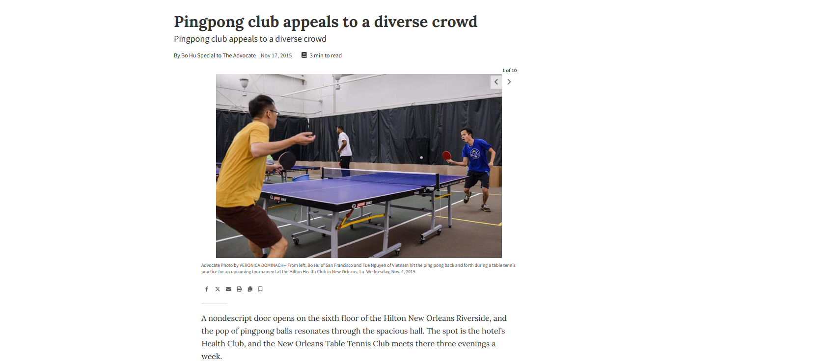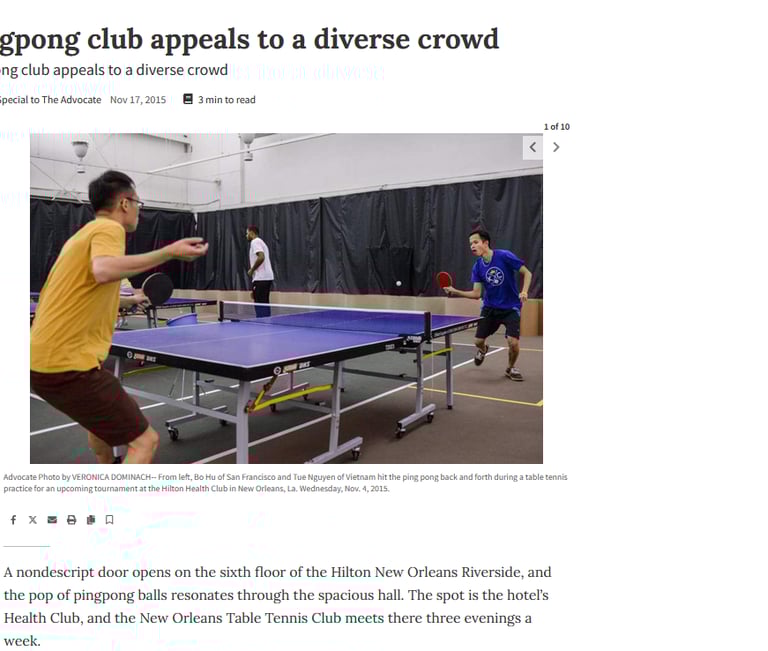 NOLA.com article about Ping Pong club (Nov 17, 2015)
